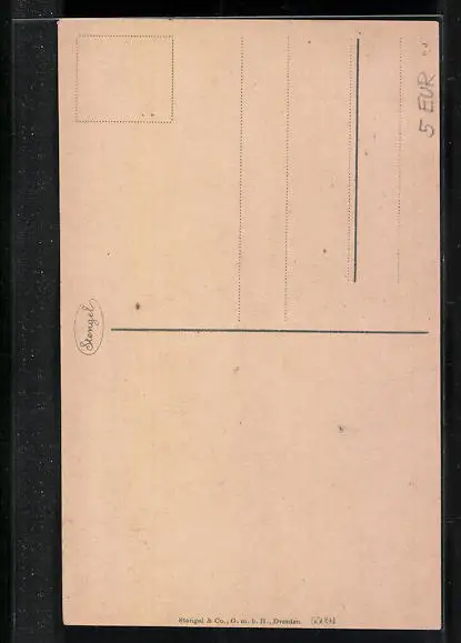 Personenbezogene Daten auf der Rückseite der Karte wurden durch blauen Textmarker unkenntlich gemacht. Die blauen Stellen sind auf die Vorderseite durchgeweicht und wirken sich negativ auf das Postkartenfoto aus