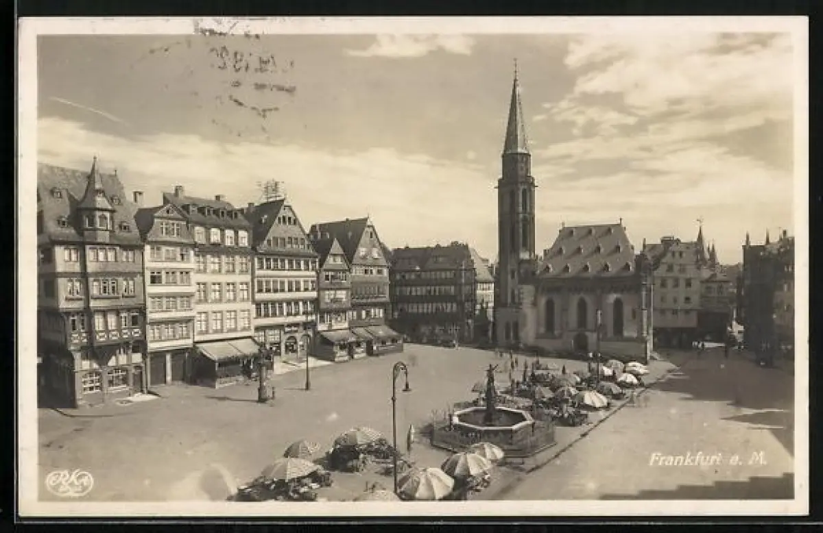 AK Alt-Frankfurt, Römerberg, Nikolaikirche, Marktbrunnen