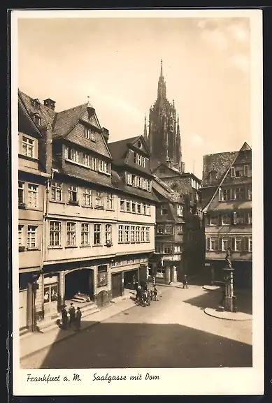 AK Alt-Frankfurt, Strasse Saalgasse mit Dom