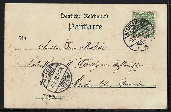 alte Ansichtskarte, gelaufen 1898, Eckknick unten li., guter Zustand