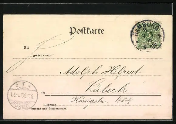alte Ansichtskarte, gelaufen 1899, guter Zustand