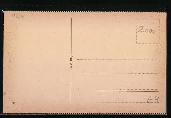 Personenbezogene Daten auf der Rückseite der Karte wurden durch blauen Textmarker unkenntlich gemacht. Die blauen Stellen sind auf die Vorderseite durchgeweicht und wirken sich negativ auf das Postkartenfoto aus