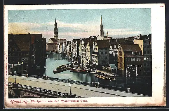 AK Alt-Hamburg, Fleetpartie von der Wandrahmsbrücke gesehen