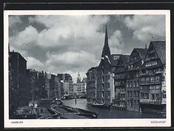 AK Alt-Hamburg, Nikolaiflet mit Kirchturm