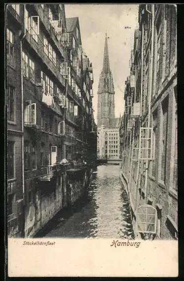 AK Alt-Hamburg, Stöckelhörnfleet mit Nicolaikirche