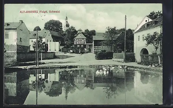 AK Alt-Jössnitz, Strassenpartie am Ententeich