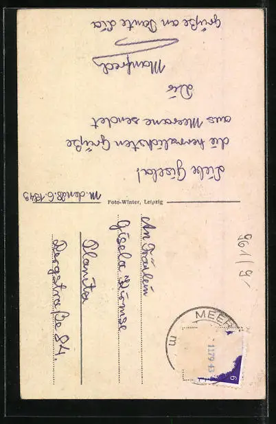 alte Ansichtskarte, gelaufen 1943, Briefmarke entfernt, rückseitig Oberflächenschaden, Eckknick oben rechts, guter Zustand