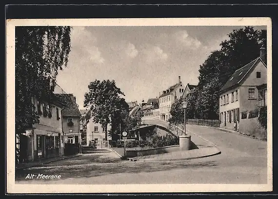 AK Alt-Meerane, Strassenpartie mit Laterne