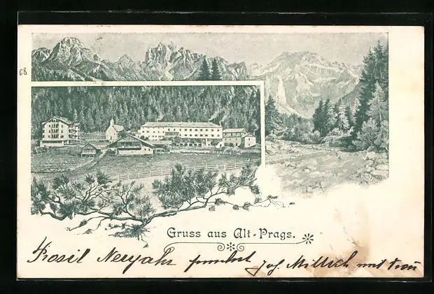 AK Alt-Prags, Teilansicht, Gebirgspanorama