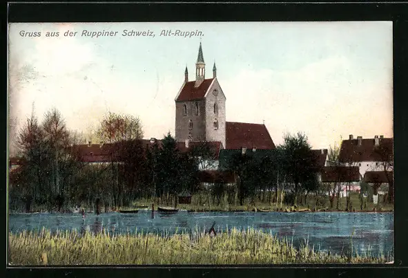 AK Alt-Ruppin, Teilansicht mit Kirche