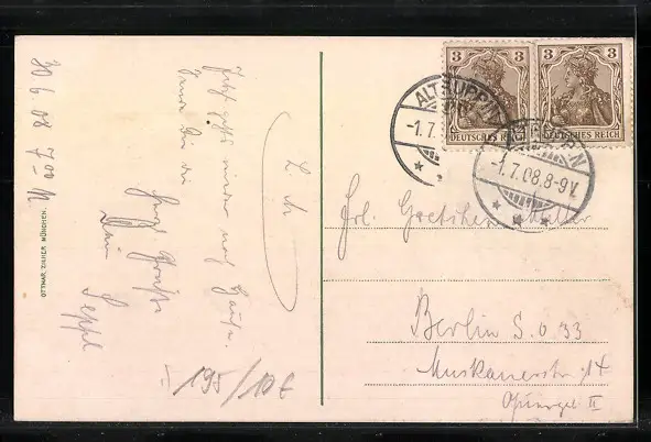 alte Ansichtskarte, gelaufen 1908, guter Zustand