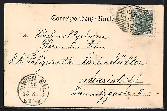 alte Ansichtskarte, gelaufen 1898, Stempelspur, guter Zustand