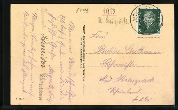 alte Ansichtskarte, gelaufen 1930, Eckknick li. unten, guter Zustand