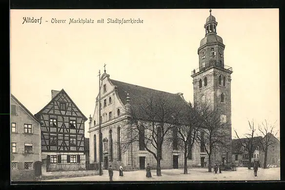 AK Altdorf, Oberer Marktplatz mit Stadtpfarrkirche