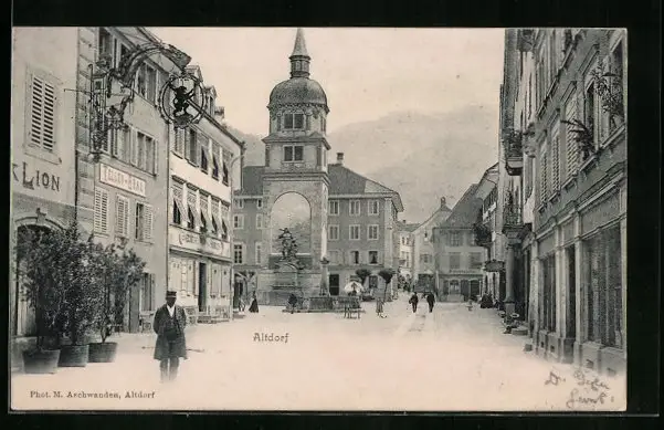 AK Altdorf, Restaurant Tellenbräu mit Tellendenkmal
