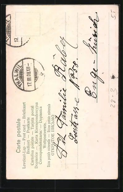 alte Ansichtskarte, gelaufen 1908, Briefmarke entfernt, guter Zustand
