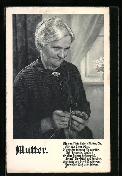 AK Alte Mutter beim Stricken, Gedicht, Muttertag