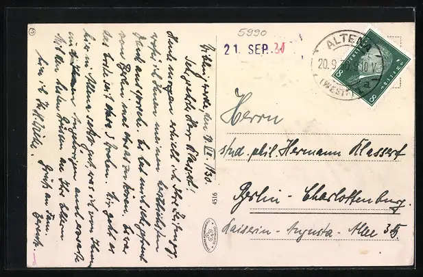 alte Ansichtskarte, gelaufen 1930, guter Zustand