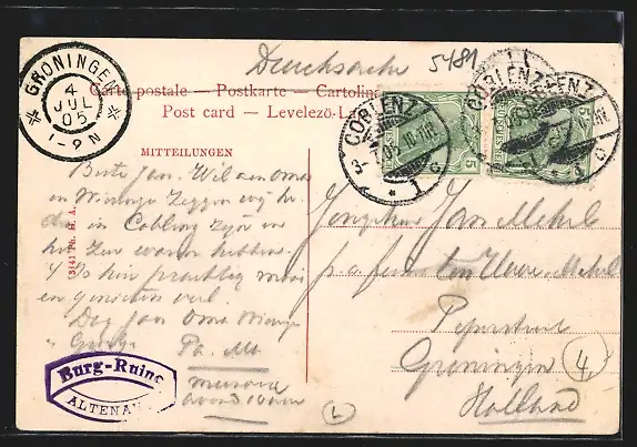 alte Ansichtskarte, gelaufen 1905, guter Zustand