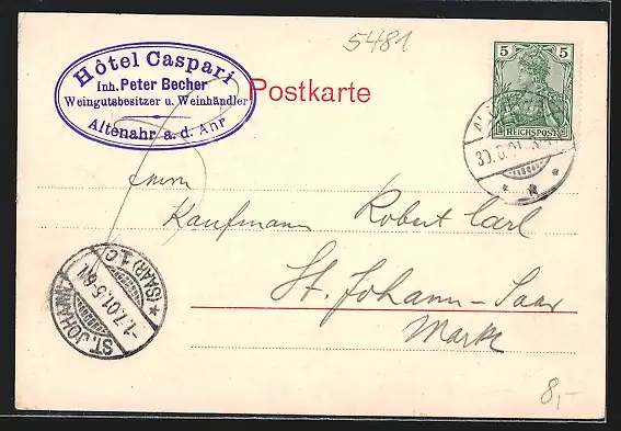 alte Ansichtskarte, gelaufen 1901, guter Zustand