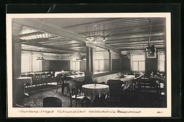 AK Altenberg /Erzgeb, Hutzenstübel Waldschänke Raupennest, Innenansicht