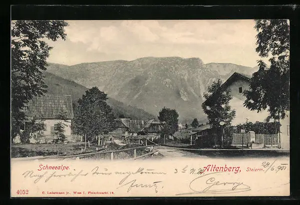AK Altenberg, Ortspartie mit Blick zur Schneealpe