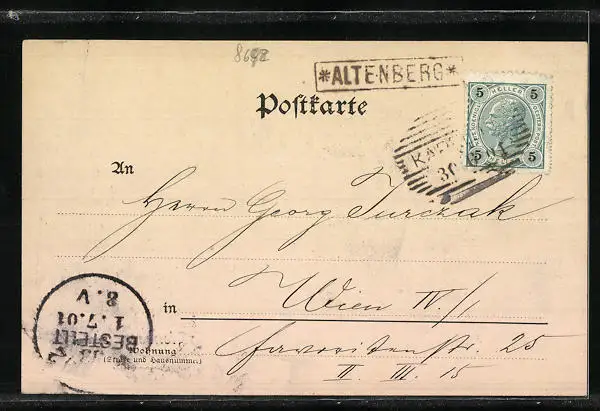 gelaufen 1901, Eckknick re. unten, guter Zustand