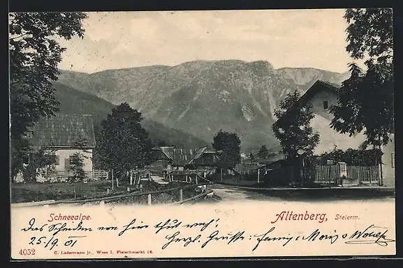 AK Altenberg, Ortspartie mit Blick zur Schneealpe