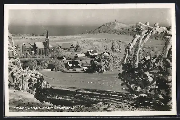 AK Altenberg i. Erzgeb., Teilansicht mit dem Geising im Schnee