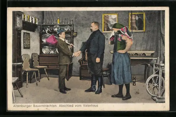 AK Altenburger Bauerntrachten, Abschied vom Vaterhaus