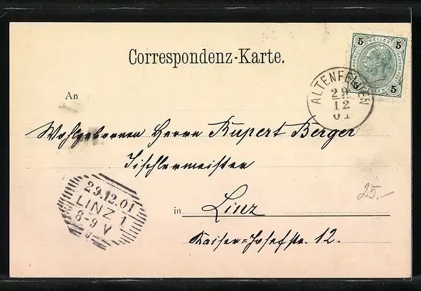 alte Ansichtskarte, gelaufen 1901, guter Zustand