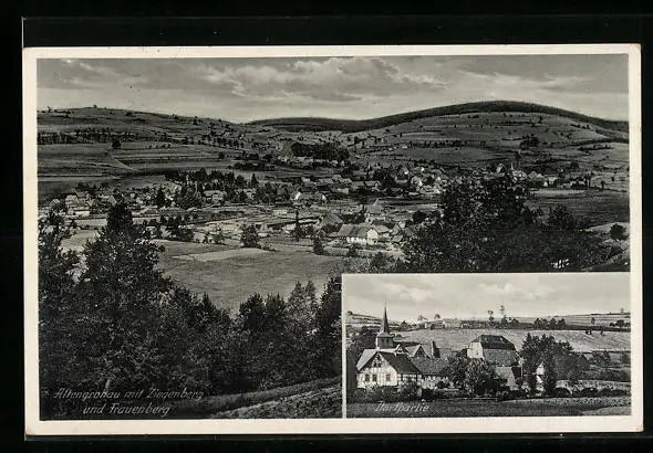 AK Altengronau, Ortsansicht mit Ziegenberg und Frauenberg