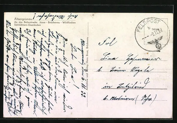 alte Ansichtskarte, gelaufen 1939 als Feldpost, guter Zustand
