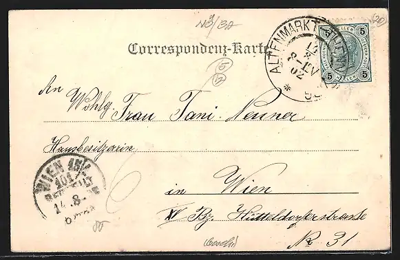 gelaufen 1902, guter Zustand