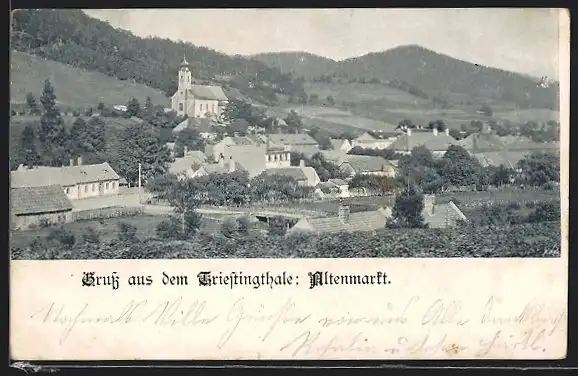 AK Altenmarkt an der Triesting, Ortsansicht mit exponierter Burg