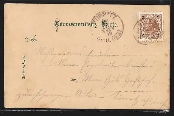 alte Ansichtskarte, gelaufen 1909, minimaler EInschnitt unten mittig, guter Zustand