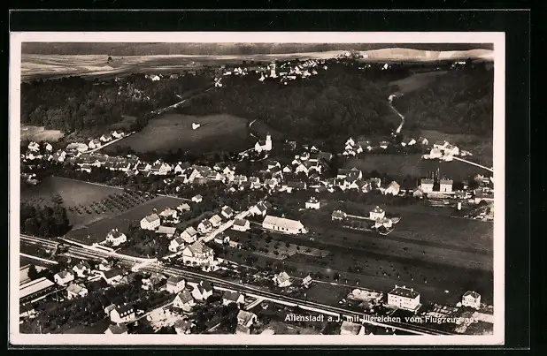 AK Altenstadt a. I., Gesamtansicht mit Illereichen vom Flugzeug aus