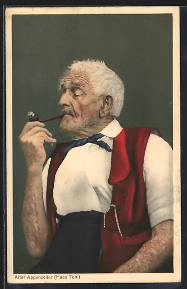 AK Alter Appenzeller Mann in Tracht mit Pfeife
