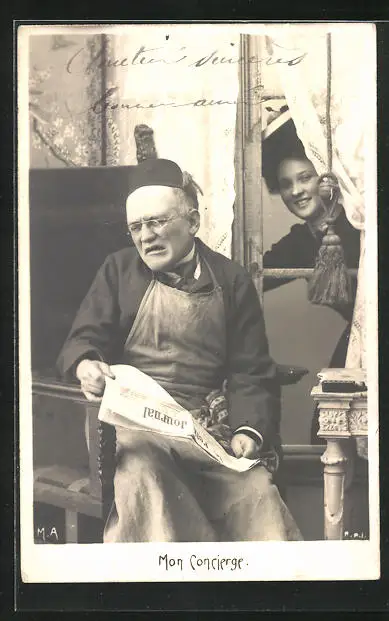AK Alter Herr Zeitung lesend, Mon Concierge