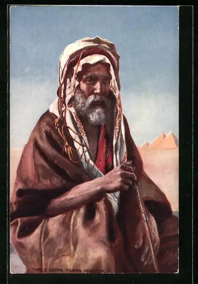 AK Alter arabischer Mann vor den Pyramiden von Gizeh