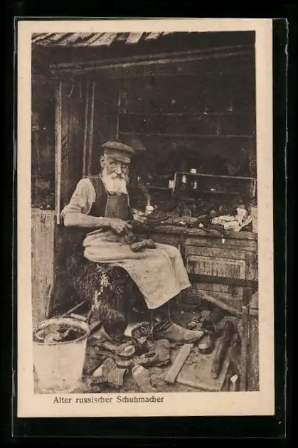 AK Alter russischer Schuhmacher in seiner Werkstatt