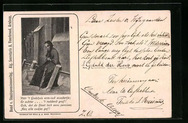 AK Altes Mütterchen rastet am Wegesrand