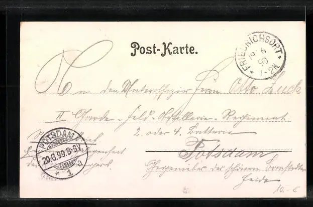 alte Ansichtskarte, gelaufen als Soldatenkarte 1899, guter Zustand