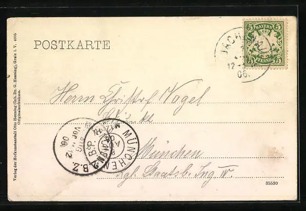 alte Ansichtskarte, gelaufen 1906, Eckknick oben re., guter Zustand