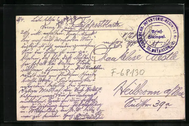 alte Ansichtskarte, gelaufen als Feldpost, kleiner Einriss li. mittig, guter Zustand