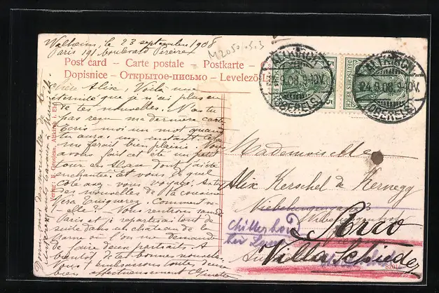 alte Ansichtskarte, gelaufen 1908, Eckknicke unten, guter Zustand