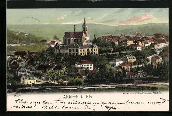 AK Altkirch, Panorama mit Kirche