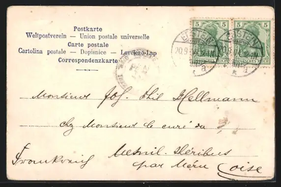 gelaufen 1904, Eckknick re. unten, Bugspur re. unten, guter Zustand