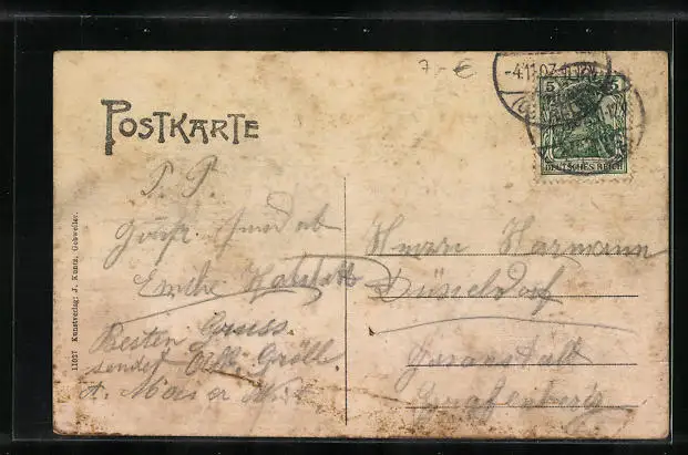 alte Ansichtskarte, gelaufen 1907, Eckknick li. unten, guter Zustand