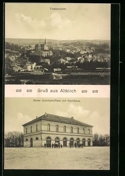 AK Altkirch, Totalansicht und Xaver Jourdain-Platz mit Kornhaus